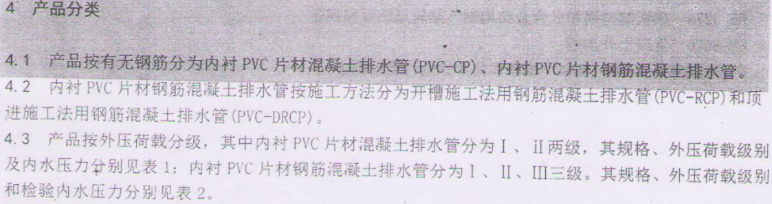 一、內(nèi)襯PVC片材混凝土和鋼筋混凝土排水管的分類